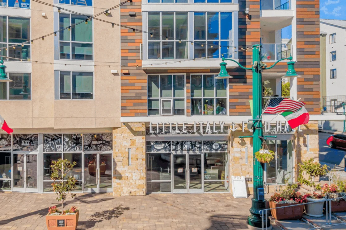During the Summer, Tiger Hospitality signed a lease for the revitalized 4,685 SF former Little Italy Food Hall at Piazza della Famiglia. The highly anticipated relaunch will feature Cosmos Burger, Lobster Lab, La Vida, daily fresh pasta, Detroit-style pizza, dessert kiosks, and a BASILE-designed indoor-outdoor bar. The renewed space is set to become a major neighborhood draw in one of San Diego’s most vibrant pedestrian plazas.